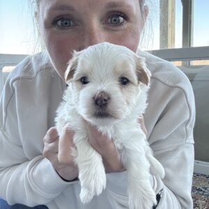 Female Registered Designer Morkie. Parents are genetic health tested. Mommy is a full bred registered Maltese. Daddy is a full bred registered Yorkie. This little girl will not only come pre spoiled, but with a puppy goody bag, toys, harness & leash, all vet records, microchipped and more!