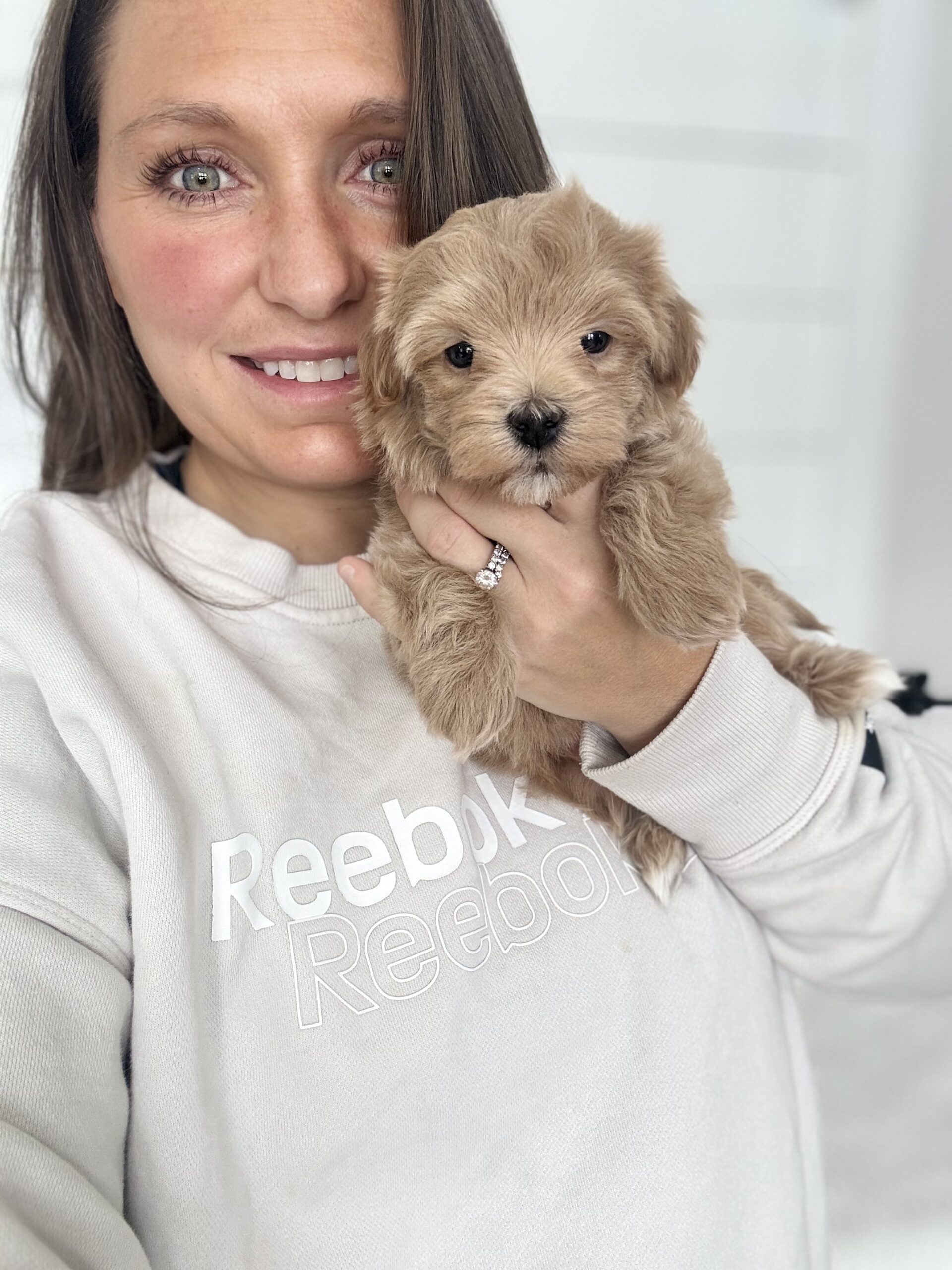 Male Registered Designer Maltipoo. Parents are genetic health tested. Mommy is a full bred registered toy poodle. Daddy is a full bred registered maltese. This little boy will not only come pre spoiled, but with 30 days of pet health insurance, a puppy goody bag, full of toys, harness & leash, all vet records, microchipped and more!