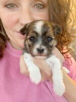 Male Designer Morkie. Parents are genetic health tested. Mommy is a full bred registered Maltese. Daddy is a full bred registered Yorkie. This little boy will not only come pre spoiled, but with a puppy goody bag, toys, harness & leash, all vet records, microchipped and more!